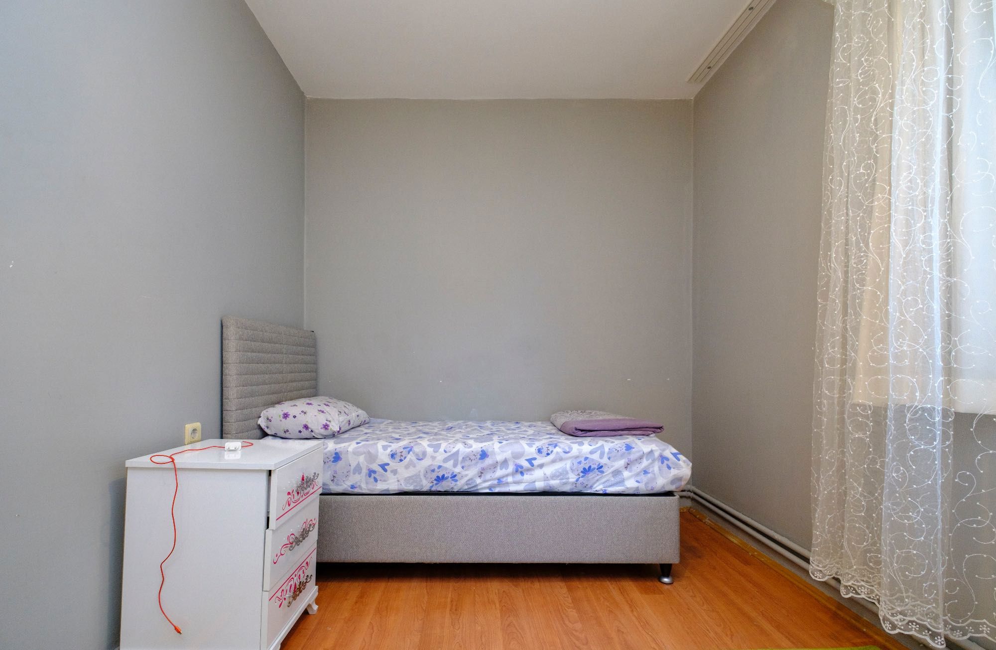 Üç katlı binanın 2. katında yer alan daire brüt 90 m², net 80 m² kullanım alanına sahiptir. İçi tamamen yapılmış olup herhangi bir masraf gerektirmemektedir.