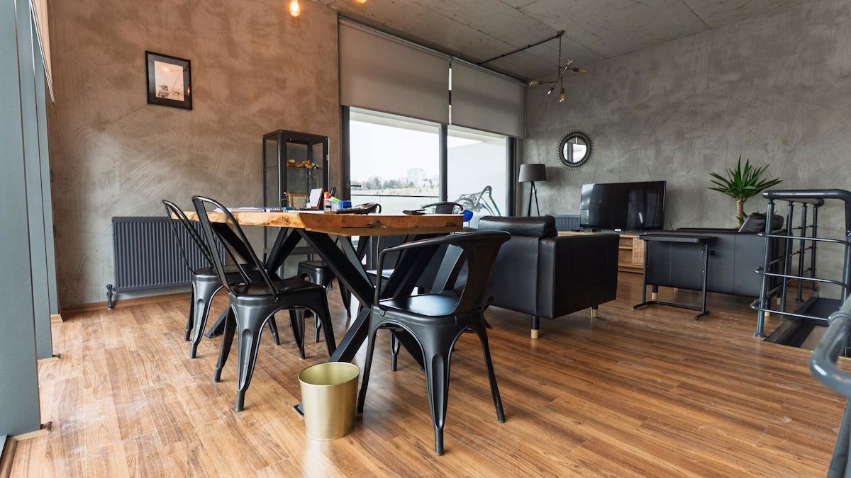 - 1 ADET METAL AYAKLI AHŞAP TOPLANTI MASASI VE 5 ADET METAL SANDALYESİ