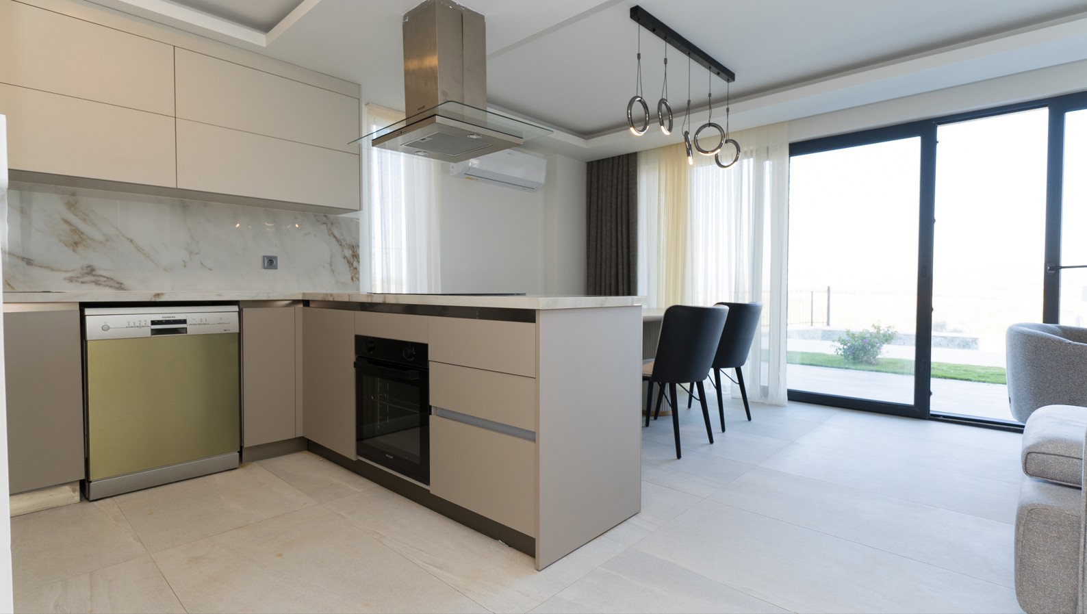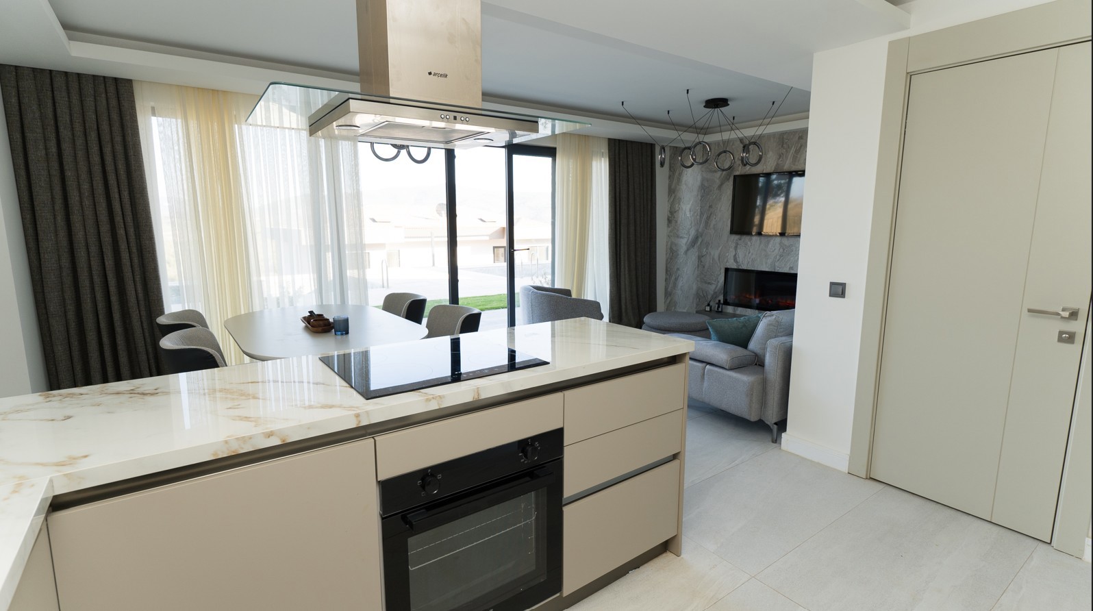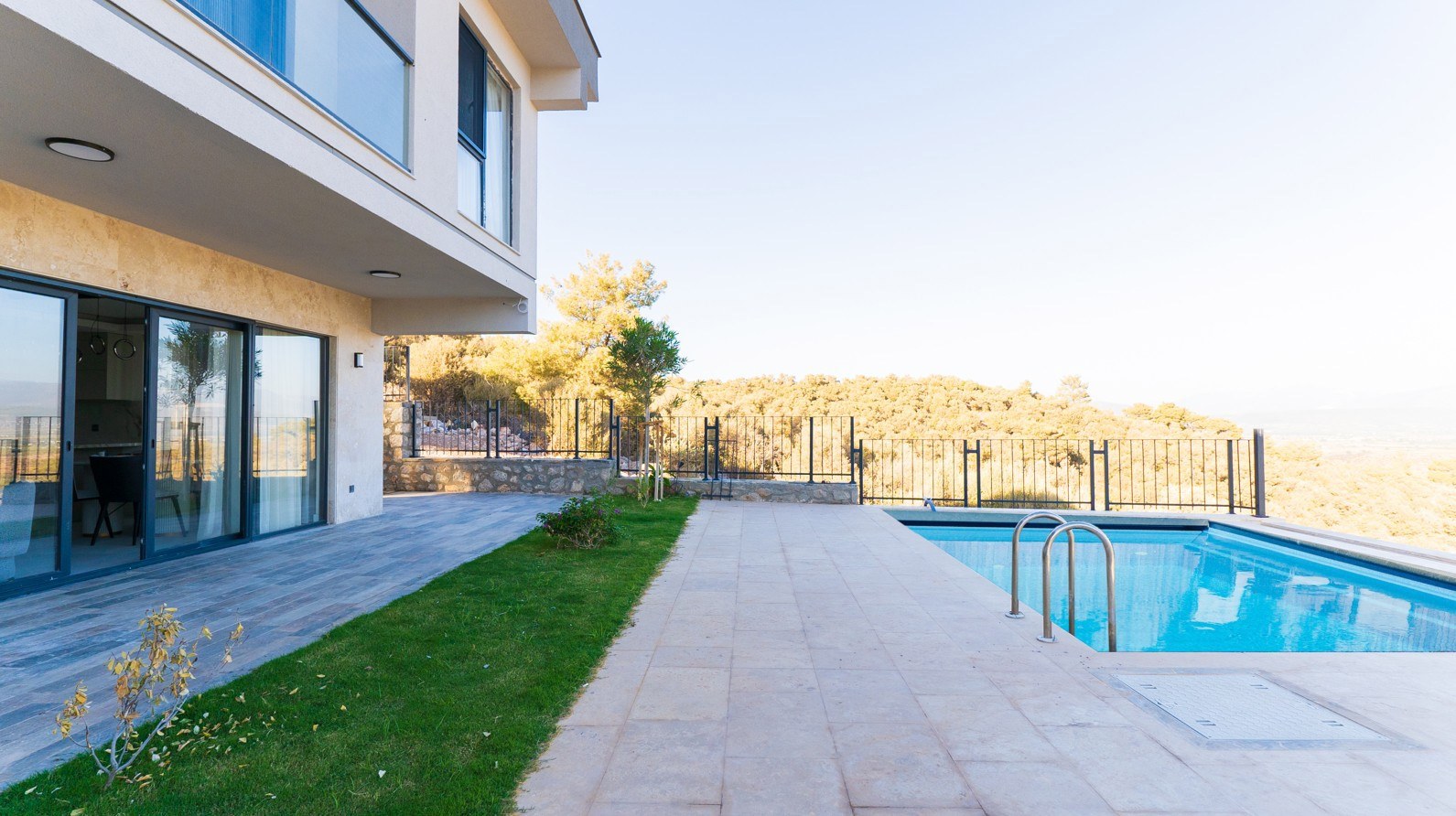 Villa eşyalı olarak sunulmaktadır. Elektrikli perdeler, özel ölçü üretim tekstil ürünleri, beyaz eşyalar ve tüm mobilyalar ile kullanıma hazır durumdadır. Taşınmaya uygundur, ek düzenleme gerektirmez.