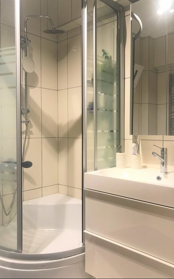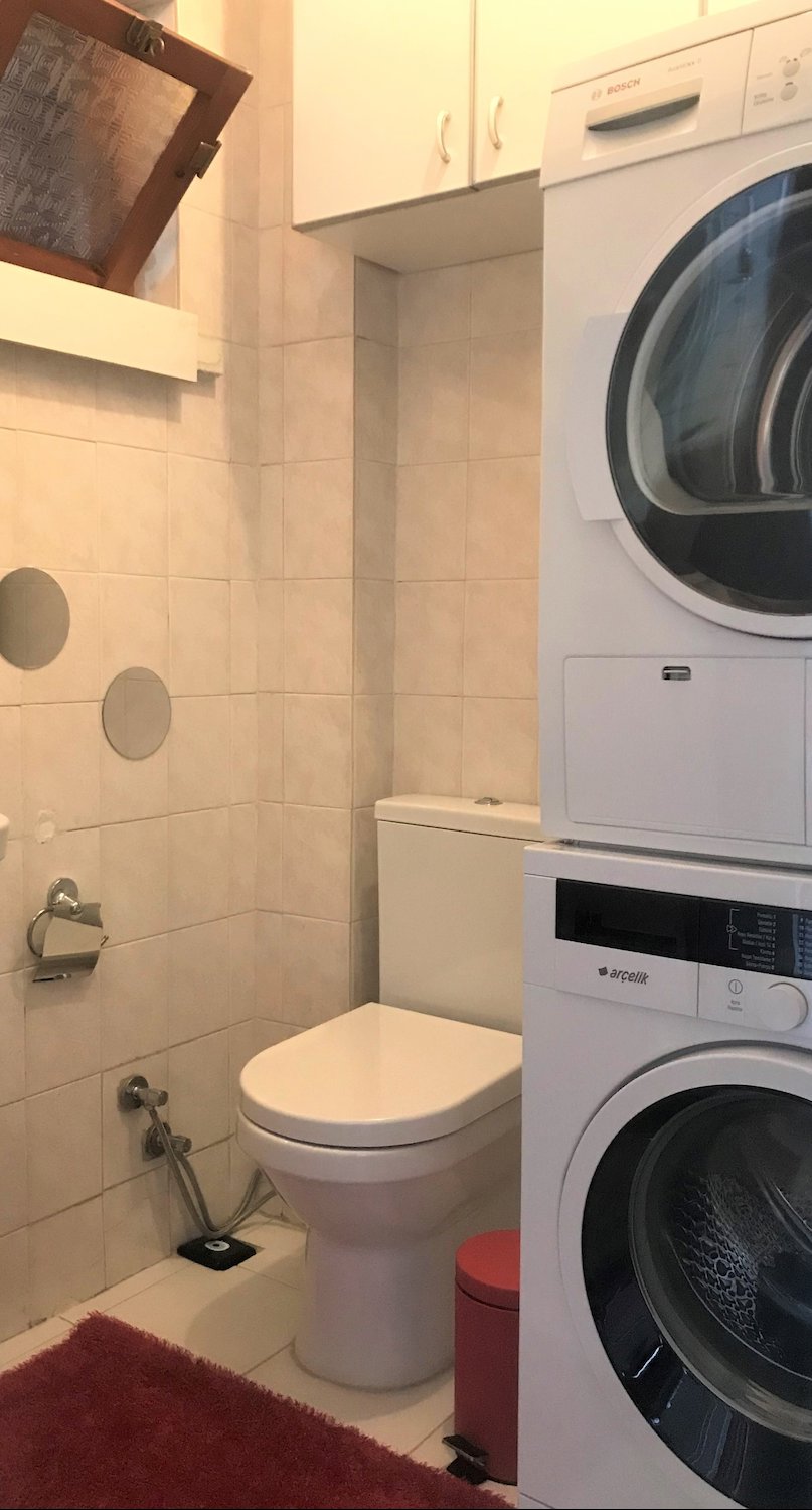 • Modern tasarımlı banyo ve WC, özel dolap çözümleri ile maksimum kullanım alanı sağlamaktadır.
