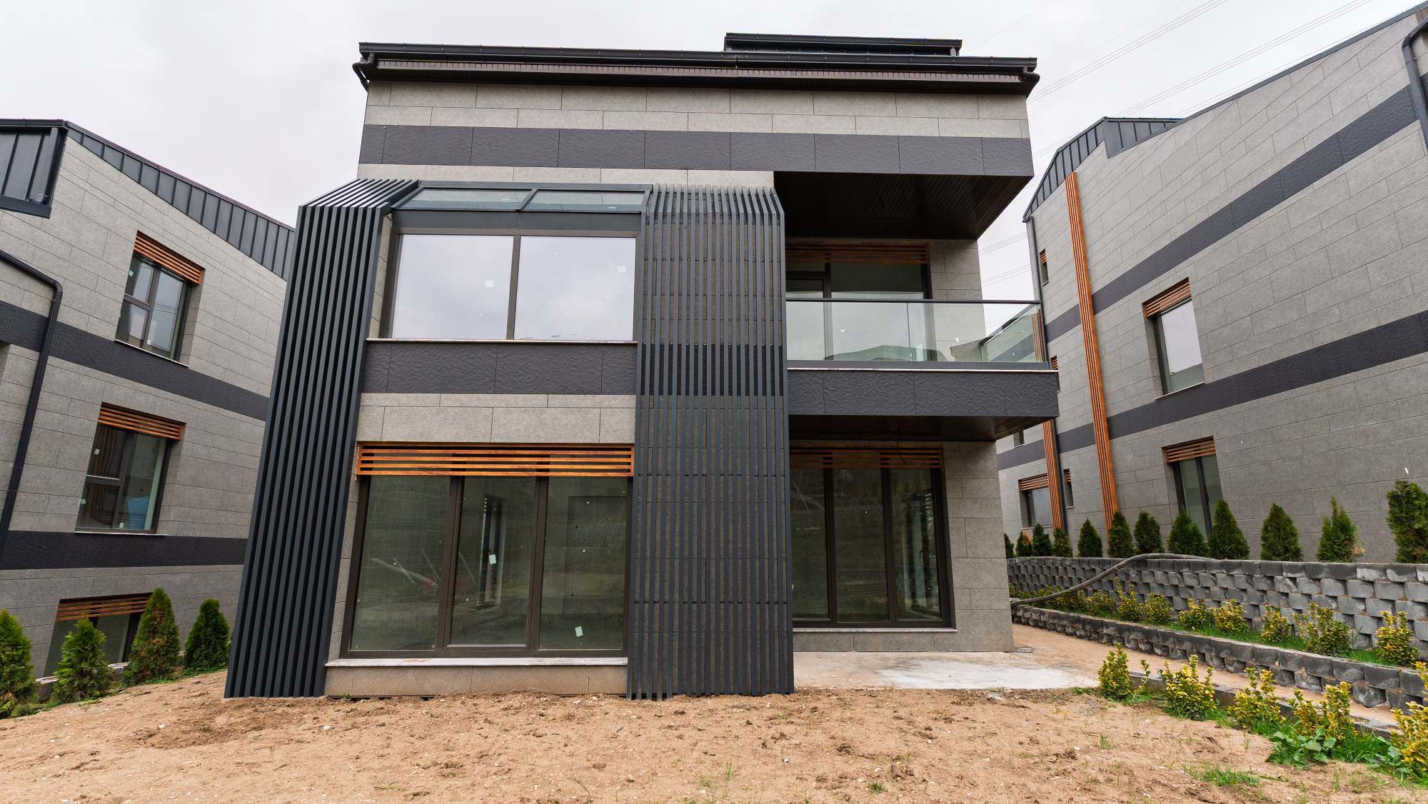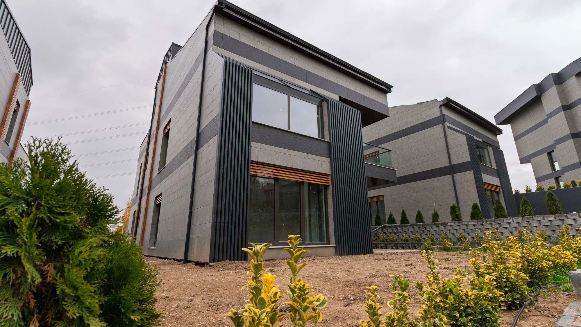Proje; C30 beton taşıyıcı sistem, Ravaproof su yalıtımı, YTONG 0.09 duvar sistemi ve Multipor mantolama ile yüksek yapı kalitesi sağlar. Cephede Kütahya Seramik Bodrum Taşı, detaylarda Seranit çözümleri kullanılmıştır. Alkosan doğrama ve pivot kapılar, Fraenkische yerden ısıtma–serinletme, yeşil çatı sistemi, yağmur suyu drenajı ve çatı üzeri güneş enerjisi sistemi ile modern, sürdürülebilir ve konforlu bir yaşam hedeflenmiştir.